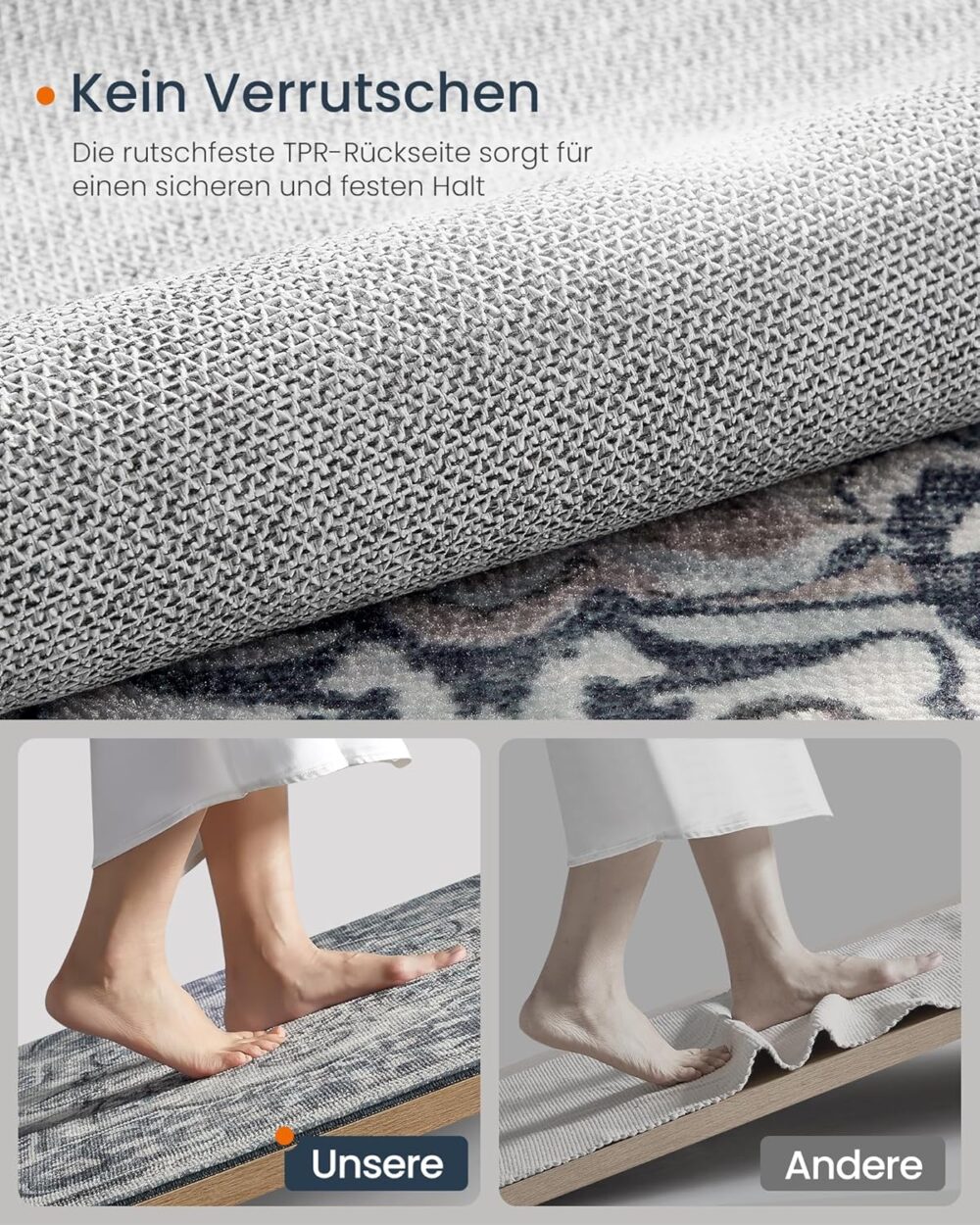 • Non-slip and versatile: the back of the rug is made of TPR and is therefore particularly non-slip, making it perfect for different floor coverings, e.g. For hardwood, tiles and more