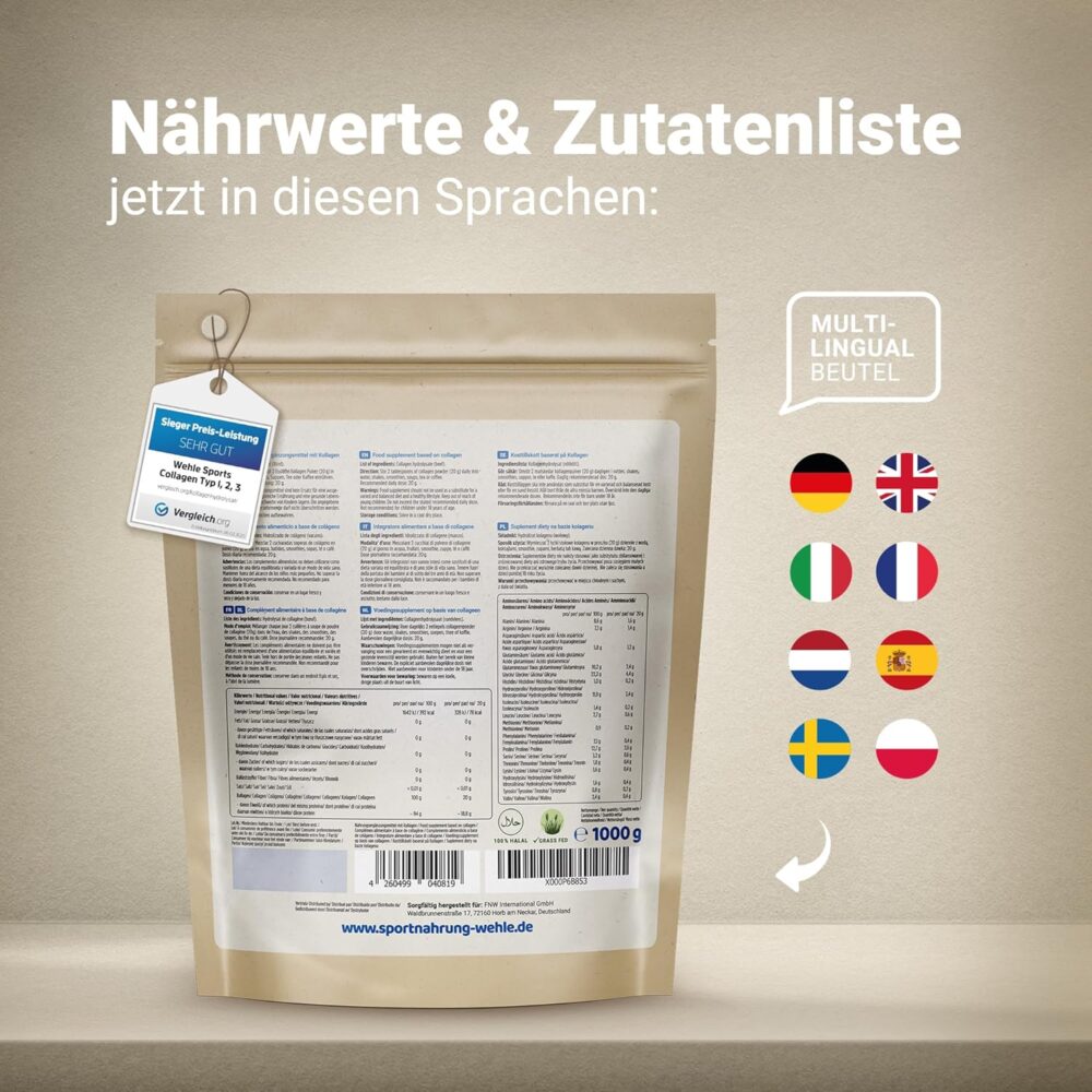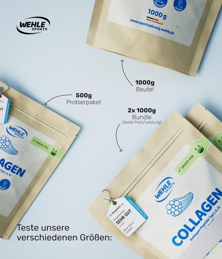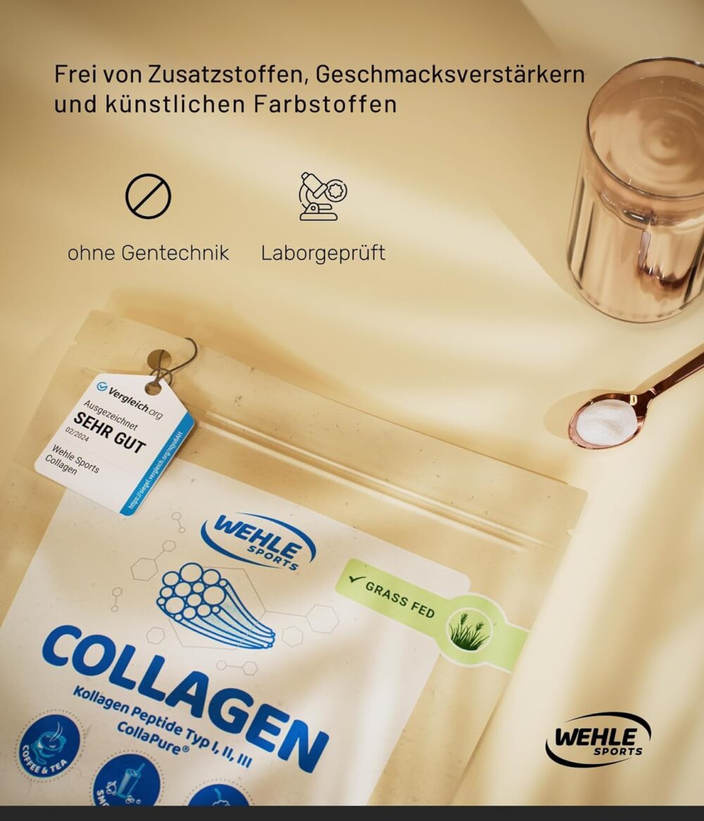 Stir 2 tablespoons of collagen powder (20g) daily in water, shakes, smoothies, soups, tea or coffee. Recommended daily intake: 20 g